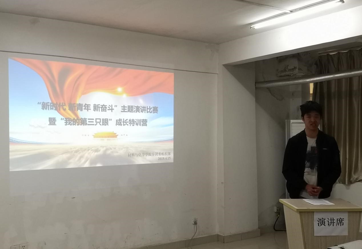 4月15日中午12:30,在63栋大学生学习支持中心三号学习室如期举行了2019年材料与化学学院的“新时代新青年新奋斗”主题演讲比赛暨“我的第三只眼”成长特训营院内初选。材料与化学学院党委副书记余江涛老师、17级辅导员陈文婷老师和18级辅导员唐伟老师作为评委出席了本次活动。