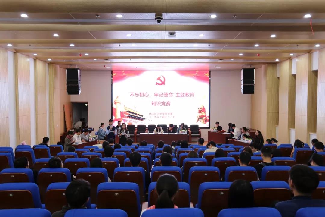 为更好推进“不忘初心、牢记使命”主题教育开展,形成以赛促学,比学赶超的良好学习氛围,2019年10月31日晚,由材料与化学学院党建办公室举办的“不忘初心、牢记使命”主题教育知识竞赛在材化楼110举行。出席竞赛的嘉宾有材料与化学学院党委副书记余江涛,本科党支部书记吴迪、陈文婷、唐伟、王博优老师和学生党支部书记、学生党员、入党积极分子。本次知识竞赛以习近平新时代中国特色社会主义思想、《中国共产党章程》以及“不忘初心、牢记使命”应知应会一百题等为考察内容,五支代表队须通过必答题、抢答题和风险题三类题型的考察,依照总分排名决出最后的奖项。