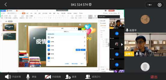 主题班会中,师生通过QQ、腾讯会议、微信等平台交流分享“全国大学生同上一堂疫情防控思政大课”的观后感。