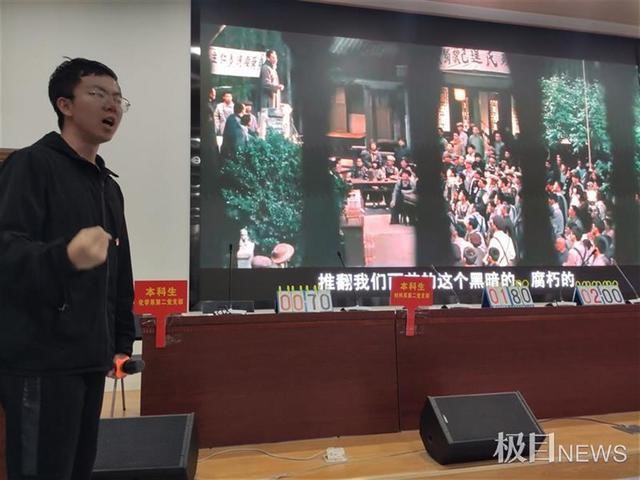 即兴演讲也是一中自我教育。各位选手围绕党的百年历史形成的精神谱系开展演讲。“红军不怕远征难……”抽到长征精神的同学语言铿锵,以诗言志,阐发对长征精神的看法。随后,红旗渠精神、航天精神、抗疫等精神内核不断被阐明。