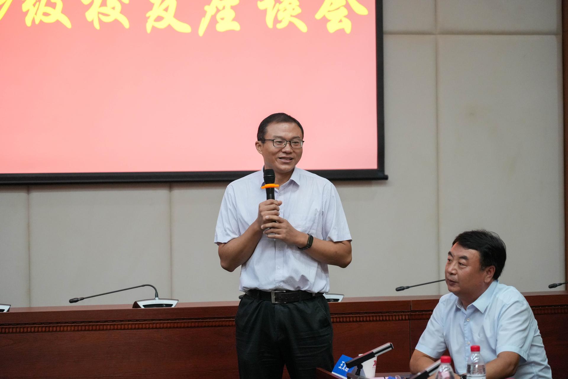 9月9日上午9时,材料与化学学院99级校友毕业二十年返校座谈会在未来城校区教学服务中心101会议室举行。校党委常委、组织部部长、统战部部长、时任材化学院党委副书记陈文武,党委宣传部部长、时任材化学院99级辅导员侯志军,未来城校区管理办公室主任、时任材化学院辅导员王文起,材化学院党委书记梁本哲,院长胡兆初,学院党委副书记余江涛,老教师代表沈上越、范力仁,材料系、化学系、院直教师代表,学院学生会主席团以及地子归社团学生代表与99级40余名校友欢聚一堂、座谈交流。学院党委副书记余江涛主持座谈会。