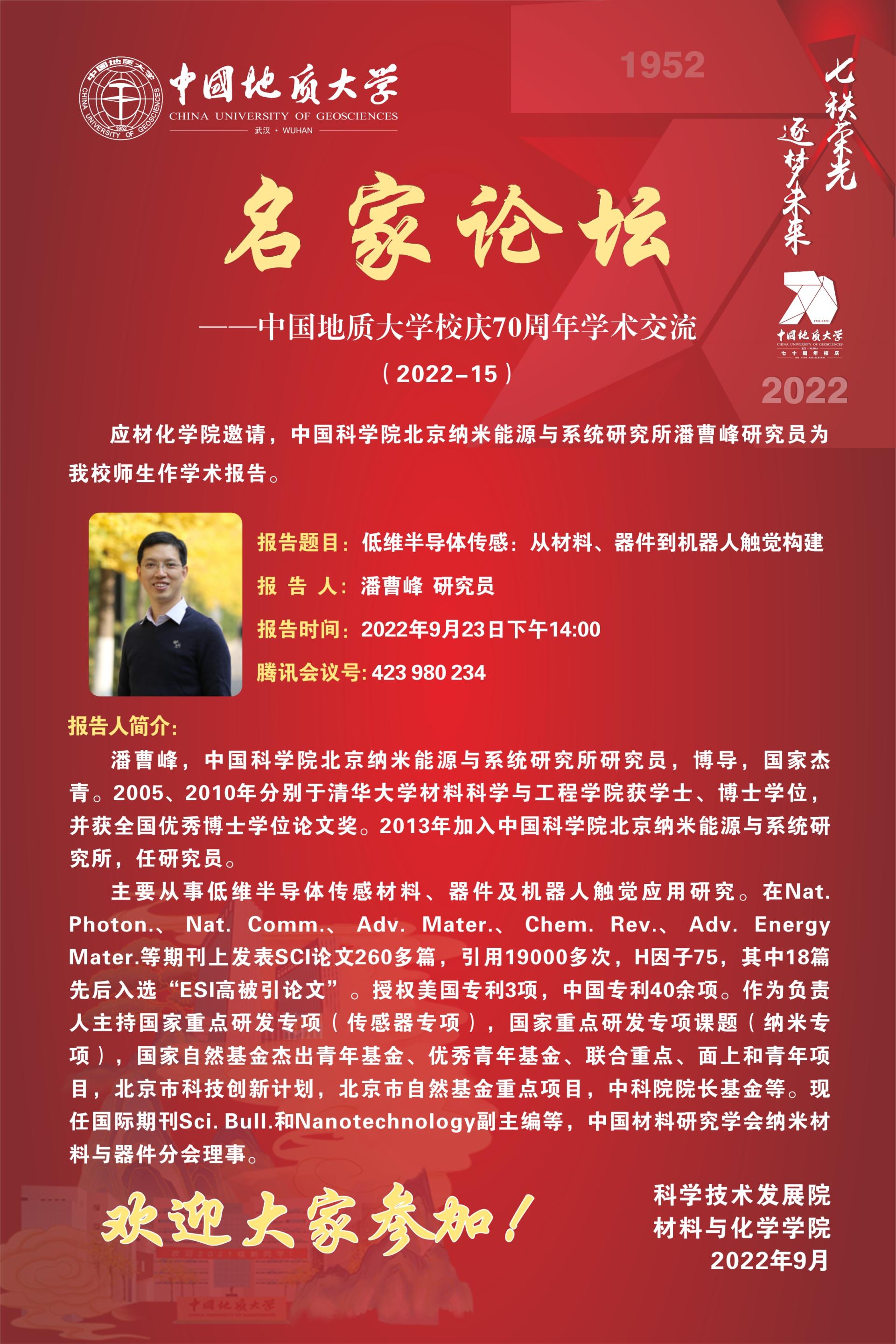 应材料与化学学院邀请,国家杰青,中科院北京纳米能源与系统研究所潘曹峰研究员将与我院师生交流并讲座。