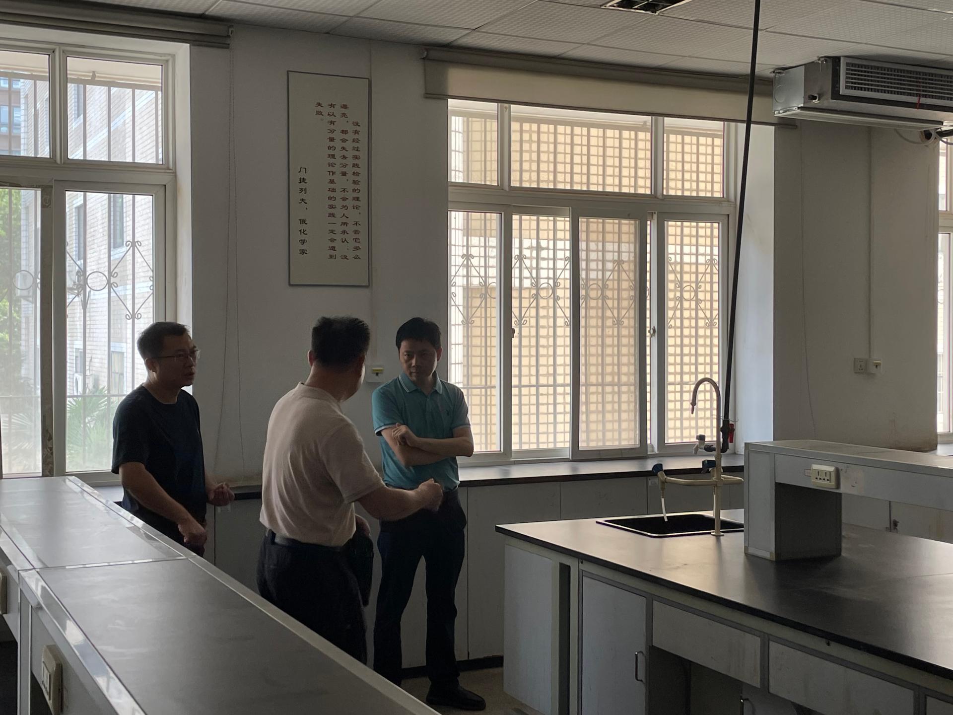 为抓好改造工作,8月1日,学院党委书记梁本哲、院长胡兆初、分管副院长公衍生走进实验室进行调研并现场研究确定改造方案。教学实验中心党支部书记周森、中心曹菱、冯莉萍以及承担改造任务的施工单位负责人等参加调研。