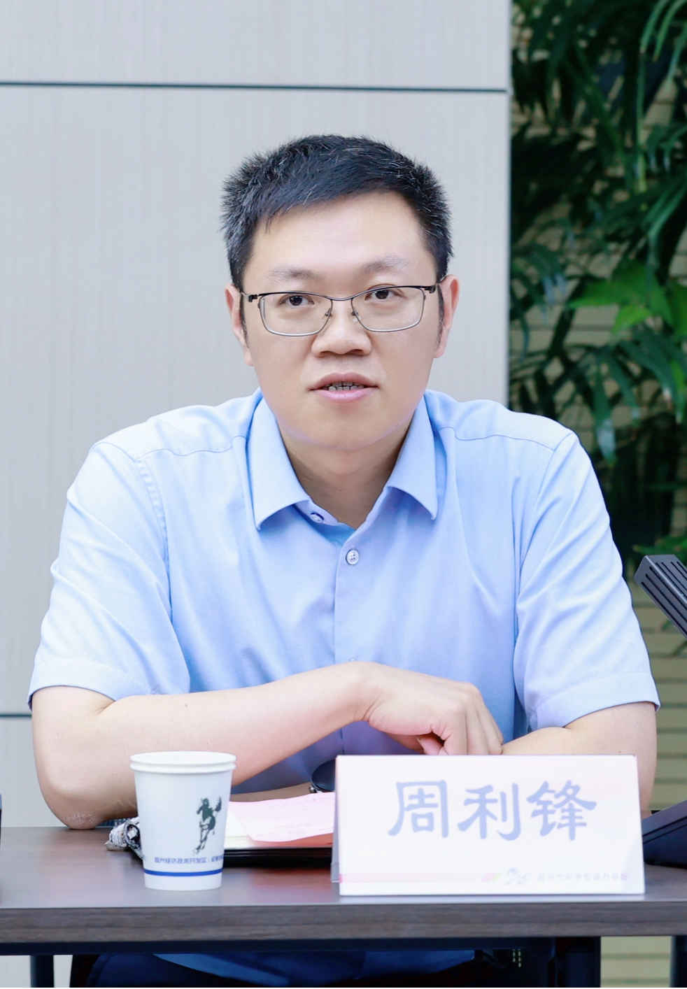 座谈会上,周利锋介绍园区产业情况,张明强介绍人才补贴政策,李国岗介绍材料与化学学院情况。
