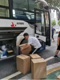 搬迁当天,从清晨开始,同学们就陆陆续续地将行李往宿舍楼下搬,大家互相帮忙,等待大巴车的到来。学院领导老师、各班班主任一大早就赶赴现场,他们亲自上阵,帮助同学们一起搬运行李。本科生院苏洪涛老师、李纪亮老师到现场进行总体把控,有序调度。在高效有序的组织下,全体人员一起为这次搬迁工作贡献自己的力量,数不尽的纸箱和编织袋有条不紊的被搬上大巴车。而在这个过程中,天空下起了淅淅沥沥的雨,减缓了大家前进的速度,但无法阻挡全体人员的前进步伐。