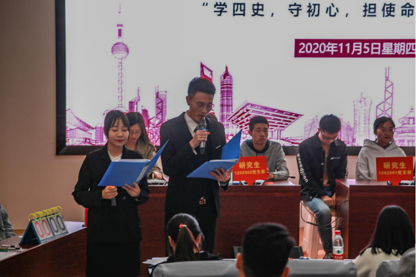 举办了“学四史、守初心、担使命”主题知识竞赛活动。学院党委副书记余江涛老师,团委书记吴迪老师、辅导员陈文婷、唐伟、侯亚飞担任评委嘉宾,各学生党支部书记和广大党员学生干部参加了活动。