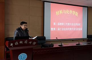 院办主任李晓晔作2018年学院财务收支情况报告,副院长周炜作教学工作报告,副院长李国岗作科研工作报告。
