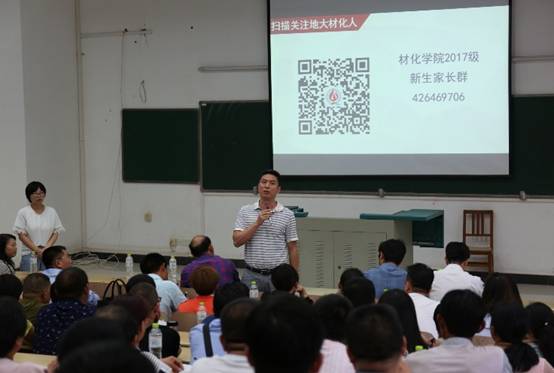 在化学楼一阶举行2017级新生家长见面会。院长夏帆、常务副院长严春杰、党委副书记黄金波、副院长帅琴、黄焱球、周俊等院领导出席,260余名新生家长参加见面会。见面会由2017级辅导员陈文婷主持。