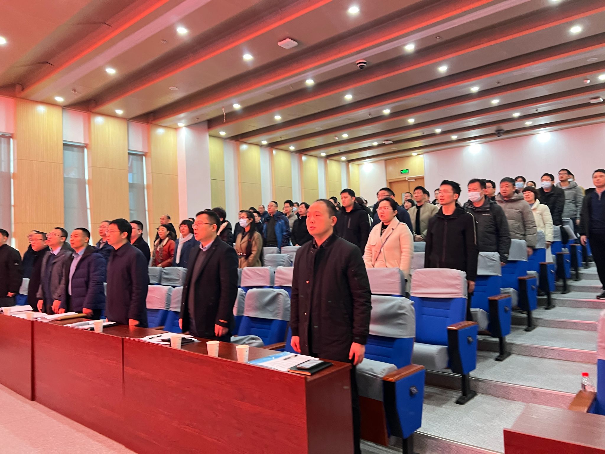110会议室隆重召开,大会在雄壮有力的国歌声中开始。