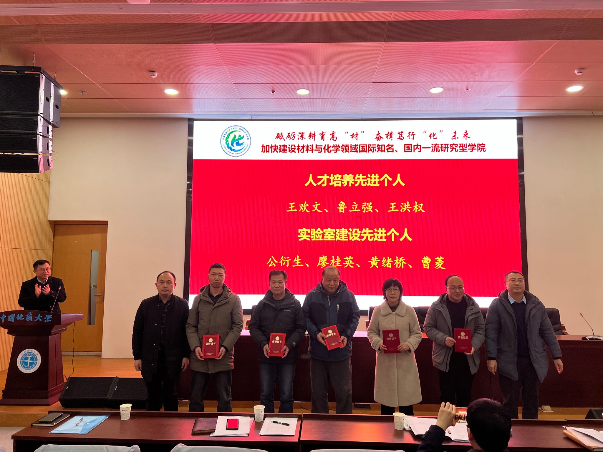 会议举行表彰活动。经各三级单位推荐、学院党政联席会研究,对一年来在党建工作、宣传工作、科技创新、社会服务、人才培养、实验室建设等方面表现突出的个人给予表彰奖励。