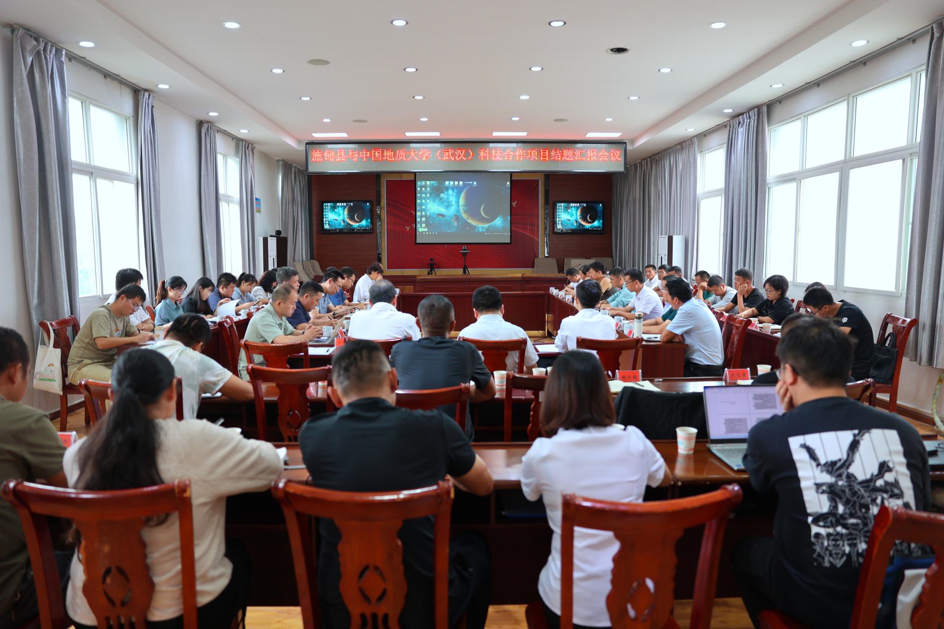 8月23日上午,中国地质大学(武汉)科技帮扶项目结题汇报暨施甸县产业高质量发展专家座谈会在县政府会议室举行。梁本哲一行及学校有关部门负责人、5个科技帮扶项目负责人以及施甸县县领导、县直有关部门及乡镇负责人等参加会议。会议听取了地大定点帮扶施甸县工作进展和科技帮扶项目研究及成果转化应用情况汇报。苏春满副县长感谢地大跨越千里的真情帮扶,对田欢等挂职干部的辛勤付出和帮扶成效给予高度肯定。梁本哲表示,地大高度重视帮扶工作,希望通过此次考察调研,能进一步深化校院与施甸县在人才培养与科学研究等方面的合作。