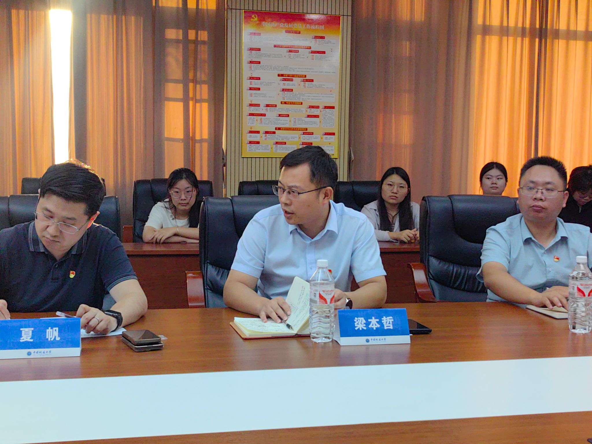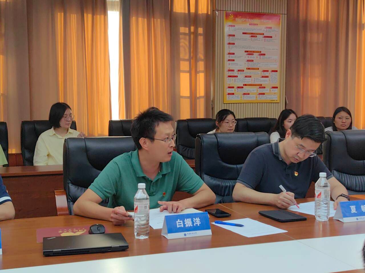 9月27日下午,学院举办生命分析化学团队研究生党支部成立仪式暨导学团队座谈交流会。生命分析化学团队负责人夏帆教授,学院党委书记梁本哲,党委副书记白振洋,办公室主任曾成,教师代表周琪涛及团队研究生同学参加本次成立仪式。党委副书记白振洋主持会议。学院党委副书记白振洋介绍生命分析化学团队研究生党支部建设的背景、目标及相关工作举措。学院党委书记梁本哲书记宣读了《关于成立生命分析化学团队研究生党支部的通知》,并为党支部授旗。生命分析化学团队负责人夏帆教授讲话。他对学院党委长期以来对团队发展的支持表示衷心感谢。他表示,党支部建设中要以落实党的二十届三中全会精神及全国教育大会精神为指导,扎实推动党建与业务工作深度融合发展,以钉钉子精神抓好落实,协力推动党支部高质量建设发展,挺膺担当争做全国样板,团队师生要齐心协力,竭力为党支部建设保驾护航。教师代表周琪涛及学生代表分别围绕党支部高质量发展及导学团队建设等进行交流发言。学院党委书记梁本哲总结讲话,他对支部成立表示热烈祝贺,对支部发展提出明确要求:要立足“七个有力”,抓好支部基础建设;要立足“一融双高”,抓好支部创新发展;要立足辐射带动,抓好本研贯通培养,要立足引领示范,抓好先进典型培育。他希望,党支部要充分学习借鉴“全国党建工作样板支部”的成功经验,并对标指导支部日常建设,为早日成功申报“全国党建工作样板支部”创造有力条件。 ( 拍摄:侯琴;编辑:张婉雪,张丽琪;审稿:梁本哲)