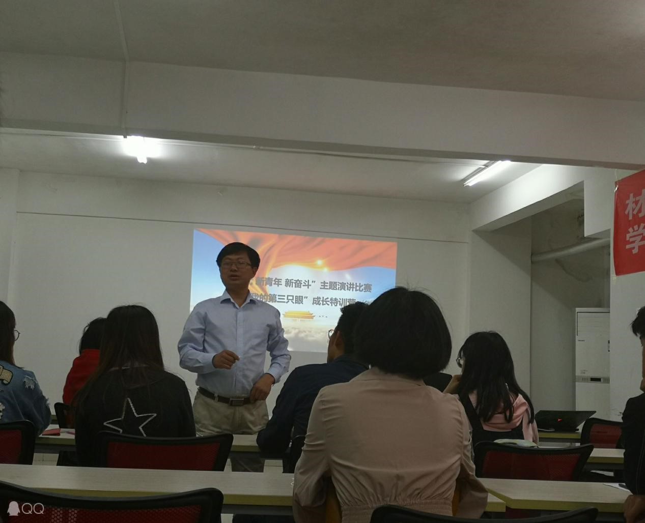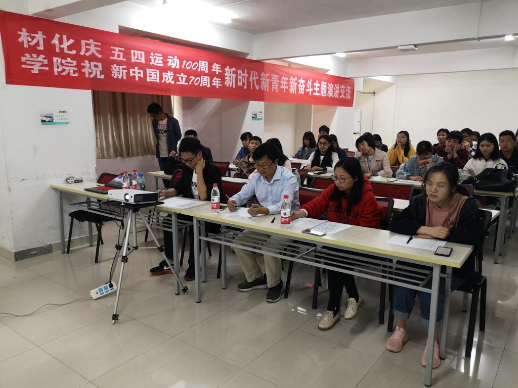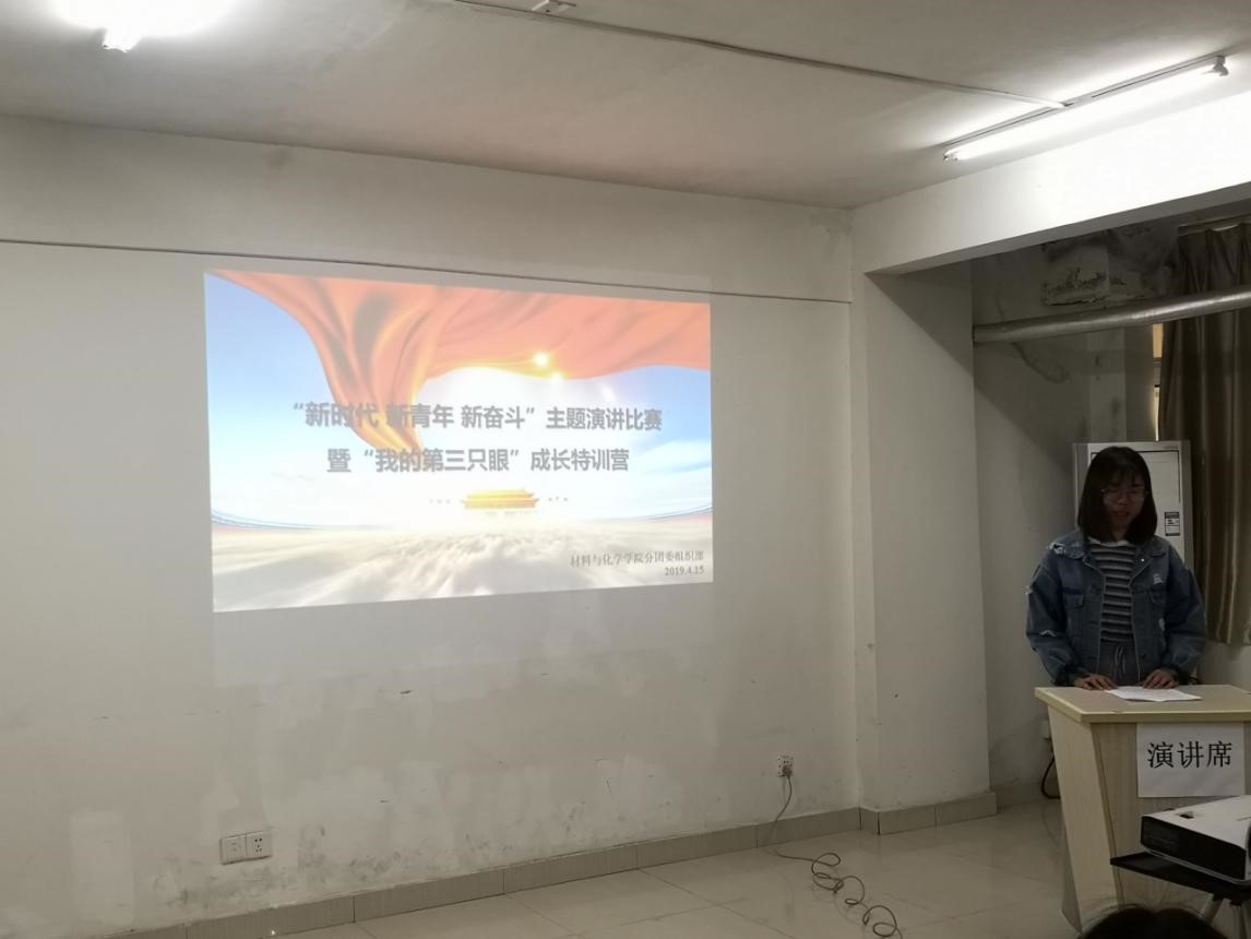 4月15日中午12:30,在63栋大学生学习支持中心三号学习室如期举行了2019年材料与化学学院的“新时代新青年新奋斗”主题演讲比赛暨“我的第三只眼”成长特训营院内初选。材料与化学学院党委副书记余江涛老师、17级辅导员陈文婷老师和18级辅导员唐伟老师作为评委出席了本次活动。