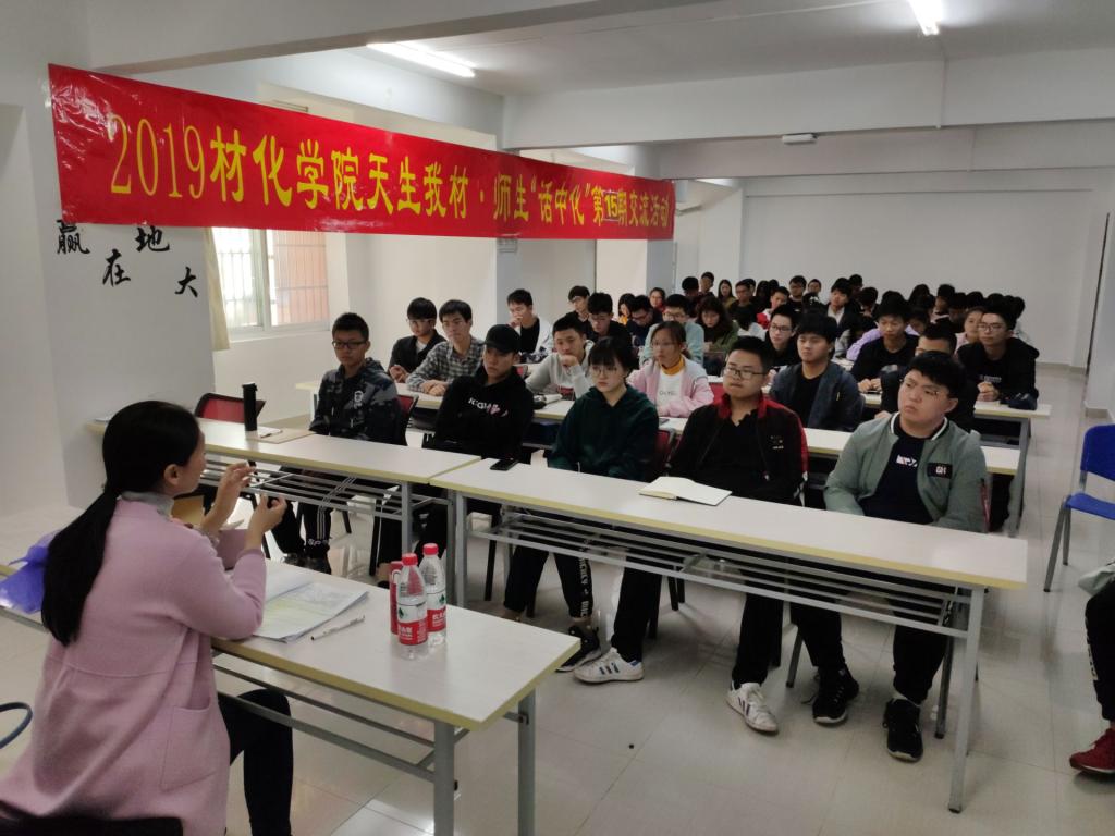 2019年11月14日下午,材料与化学学院天生我材·师生“话中化”第十五期交流活动在南望山校区大学生学习支持中心4号学习室顺利举行。本次交流活动邀请到了材化学院材料系马睿老师,她以《材料科学与工程,不再热门了吗?》为题与同学们进行了深入交流。
