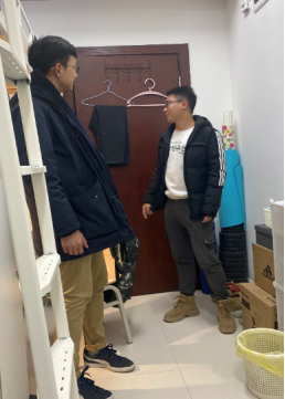 在本科生以及研究生宿舍,唐伟认真查看宿舍各个角落,检查有无热得快等违章电器,排除可能发生安全问题的隐患。同时提醒学生假期在校需要更加注意消防、用水用电以及人身财产安全,提高防范意识,离校前要做好宿舍内务整理,保证宿舍安全干净整洁,维持良好宿舍环境。