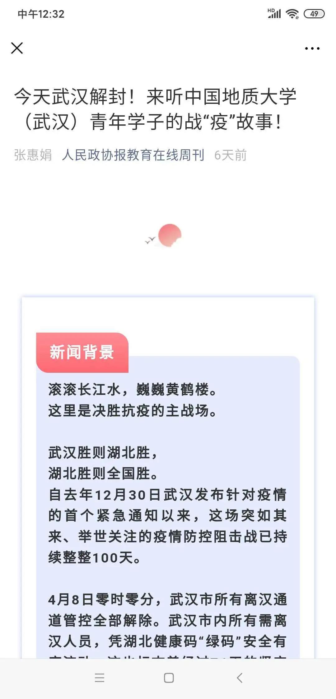 “青年一代有理想、有本领、有担当,国家就有前途,民族就有希望。”在非常时期,在这特殊的战场,千千万万像徐子扬这样的青年用坚守与奉献书写着生命的不平凡。作为土生土长的湖北人,徐子扬在荆楚文化的滋润下长大,他深深热爱自己的家乡。在未来的日子里,他将继续发扬湖北人不畏艰险、顽强不屈、拼搏奋进的精神,怀揣着对祖国和人民的责任担当,继续前行。