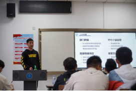 各部门介绍完毕后,经济管理学院学生代表谢琨淮进行发言,他首先代表经济管理学院全体师生向本次大会的顺利召开表示了祝贺;随后他从个人经历出发,分享了在学生组织工作的经验和感悟,他表示“做好分内之事” 是一名学生干部的底线,要在这个基础上互帮互助,向共同目标前进,更要主动思考,寻求创新;最后,他也向看漫画