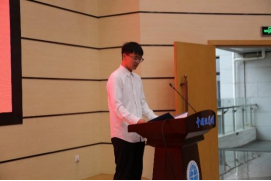 高年级研究生代表、2021级硕士研究生马瑞奇同学发言。他结合自己的求学经历,以“目标、坚持、品性、情义”四个主题与大家共勉,希望和大家一起在实践中砥砺品格、强化本领,努力成为可堪大用、能负重任的地大材化青年。