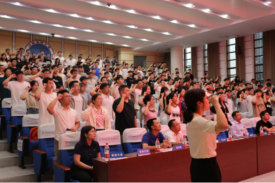 在研究生辅导员张丽琪老师带领下,全体研究生新生进行了学术道德诚信宣誓。大家目光坚定,庄严宣誓,充分展示了诚信科研、营造健康学术环境的决心。