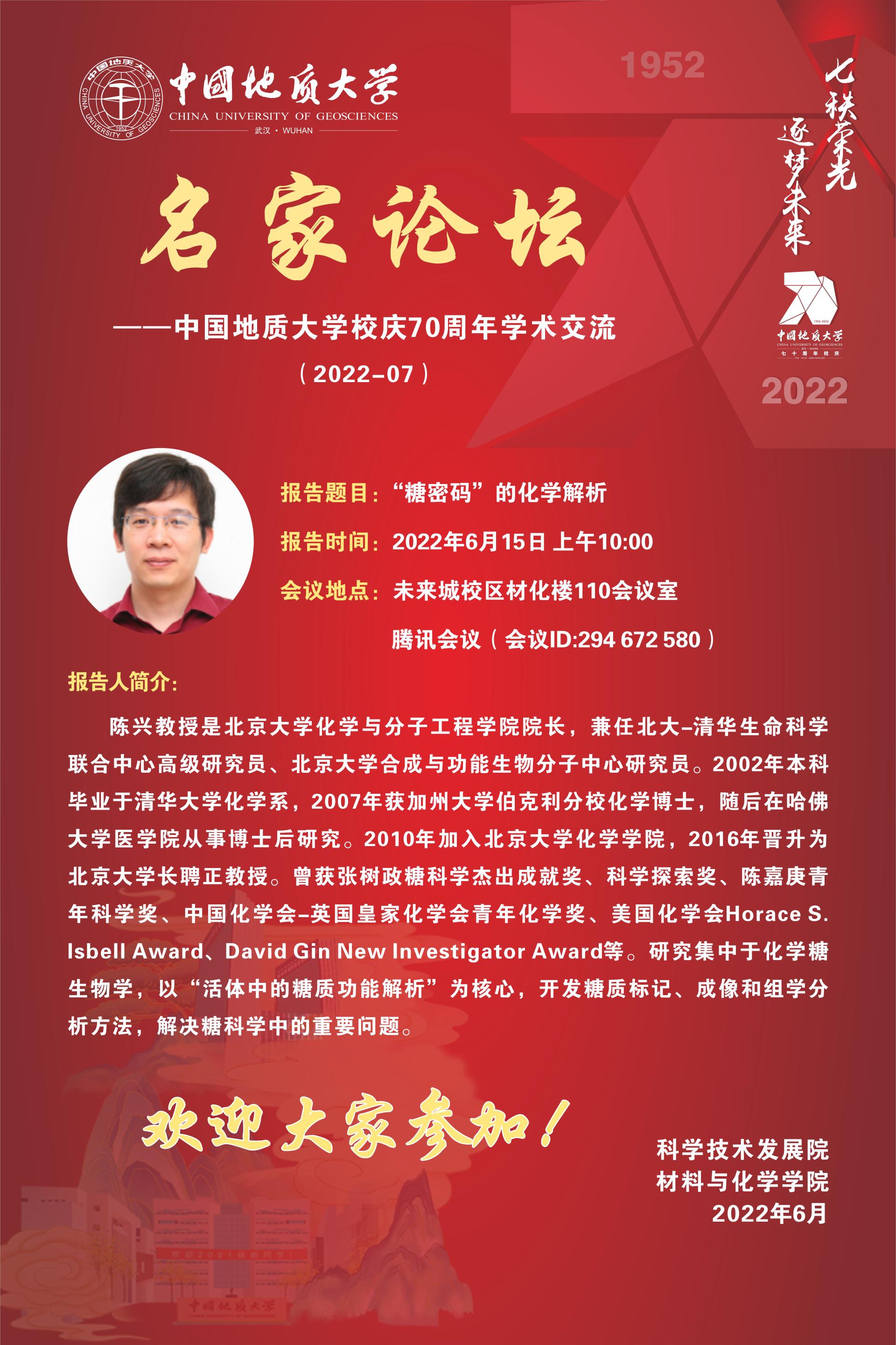 应材料与化学学院邀请,国家杰青、北京大学化学与分子工程学院院长陈兴教授将与师生交流并讲座。