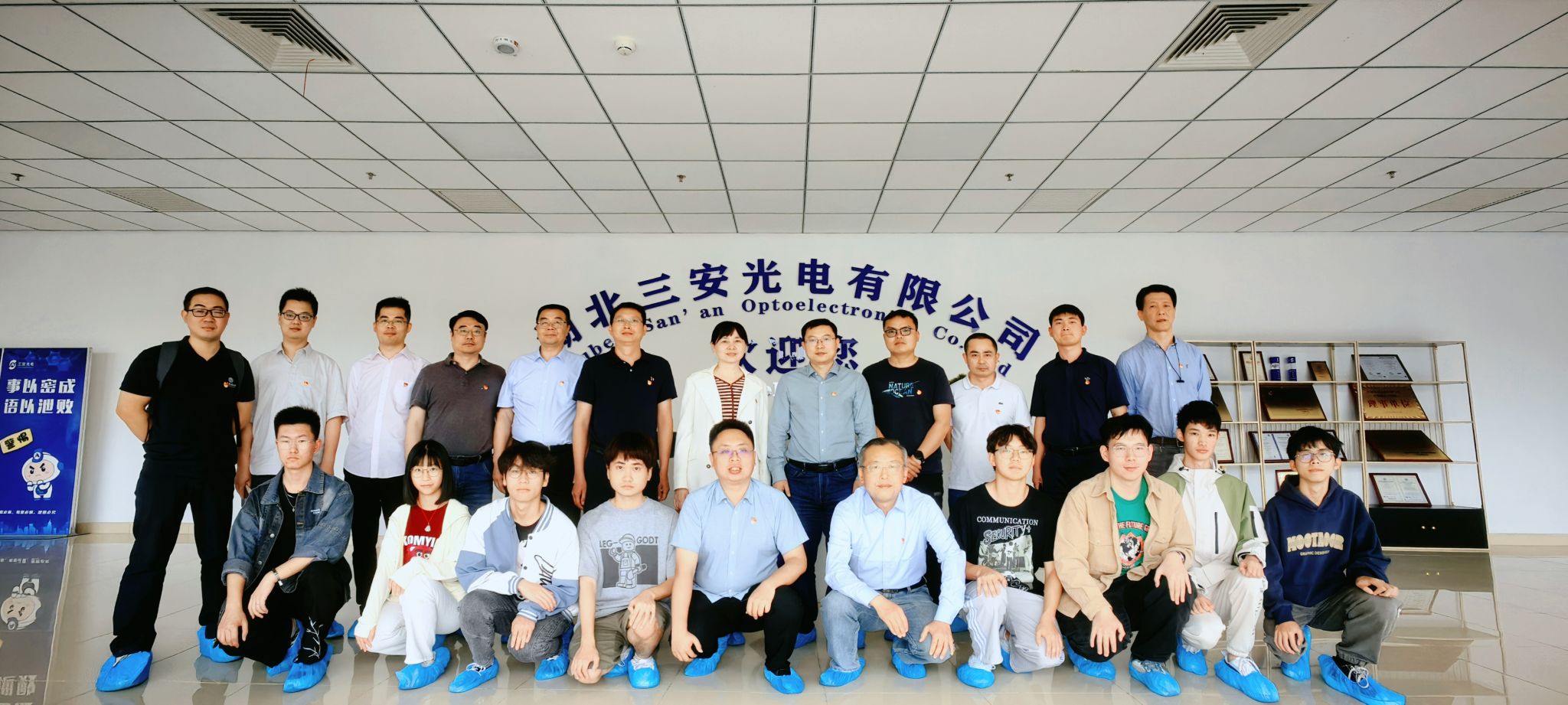 在三安光电公司,同志们走进公司展厅和生产、研发产线进行参观,在讲解员的介绍下,详细了解企业文化、企业战略、员工培养以及半导体、显示屏等主营产品研发等情况。随后,学院师生与企业高管、校友代表进行座谈,双方就产教融合、在校生培养、毕业生发展、校企合作等进行深入交流。