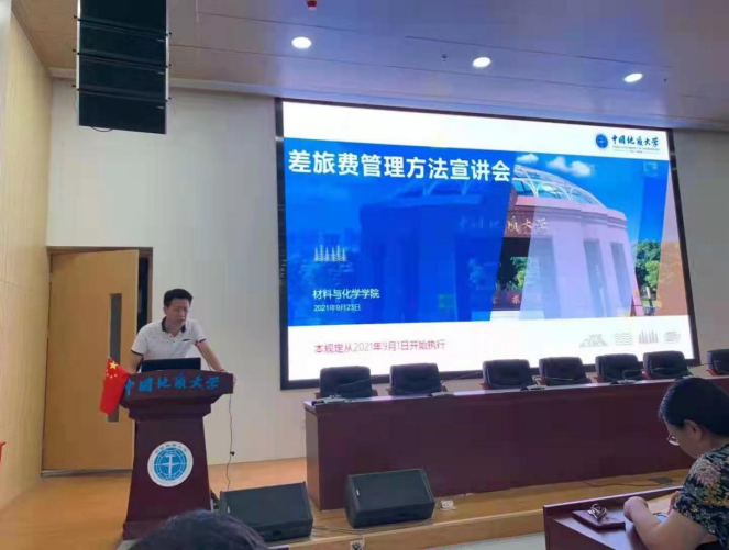 院办李晓晔主任对新修订的学校差旅费管理文件的内容进行了传达,他重点讲述了新文件的重要修改点,具体讲述了差旅费报销中各项费用报销注意事项,最后强调了全体师生应严格按照《中国地质大学(武汉)差旅费管理办法》文件规定进行差旅费开支报销。