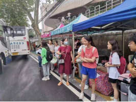 在终点站——未来城校区,学院领导班子和院直老师早早就在宿舍楼下等待同学们的到来,让同学们一下车就感受到了亲人般的关怀。未来城校区管理办也为同学们安排了充足的行李转运车。从大巴车到转运车,从宿舍楼下到宿舍,学院领导老师和同学们齐心协力,将全部行李妥帖地搬到各自宿舍。