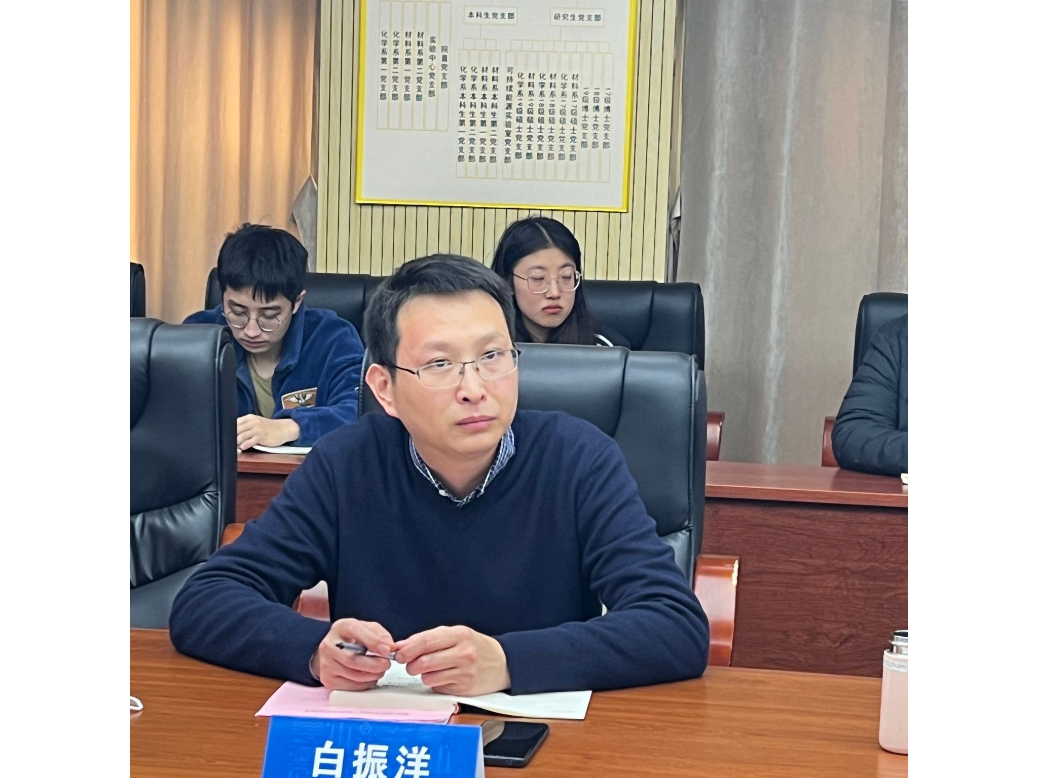 陈文武部长宣读了学校任免文件,任命白振洋为材料与化学学院党委副书记,朱振利为材料与化学学院兼职副院长,余江涛同志不再担任学院党委副书记。陈文武部长介绍了白振洋和和朱振利的基本情况。