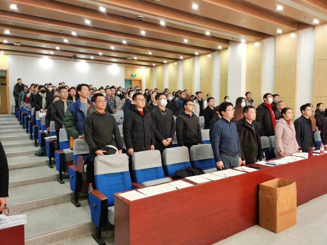 院长胡兆初同志作题为《团结奋斗,追求卓越》的2022年度学院工作报告。报告全面总结了材化学院一年来的工作成绩,从筑牢党建思政生命线、夯实人才培养根基、持续聚焦科研创新、全力改善服务保障等四个方面对2022年的工作进行了回顾,胡院长总结了一年来在持续推进教育教学改革、培养一流本科人才、加强学科及学位点建设、优秀人才引进、重点项目突破、加强科研团队及平台建设、加强实验教学及日常管理、加强实验室安全管理等方面取得的成绩,并对2023年的重点工作进行了部署,号召全院教职工共同努力,使学院各项工作再上新台阶。
